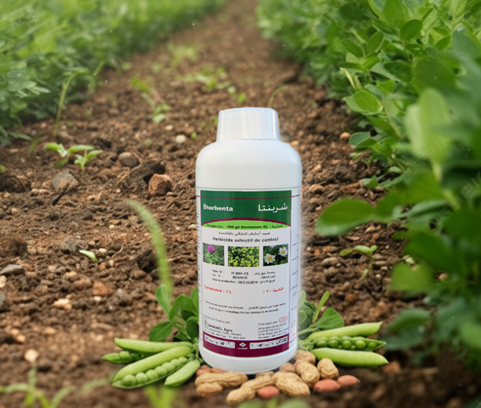 Herbicide de contact sélectif ; multiculture de post-levé efficace contre de nombreuse adventices dicotylédones. La bentazone appartient au groupe chimique des thiadizines, elle est absorbé essentiellement par la cuticule et les stomates des jeunes feuilles, elle possède par ailleurs une certaines mobilité dans la plante, elle agit en inhibant la photosynthèse et en perturbant le phénomène de respiration. Elle est ainsi à l’origine d’un épuisement des réserves en glucides des cellules végétatives entrainant une nécrose complète de la plante.